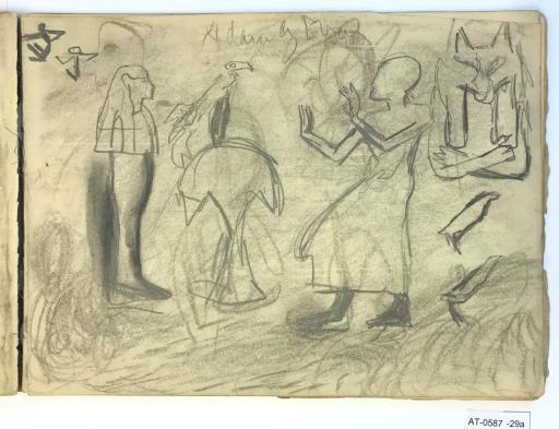 Stiliserte skisser av dyr, fugl og En egyptisk kvinne