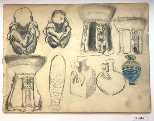 Studier av spebarn/foster, døpefonter, krukke og kanner